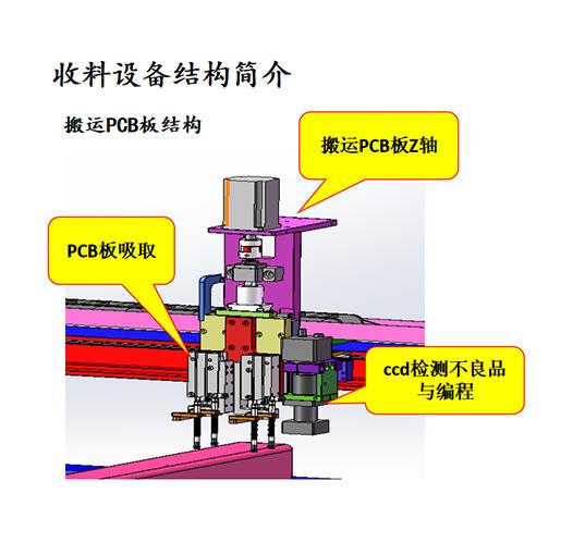 CCD相機檢測是否有差板,如果有差板則放入差板盒內,然後搬運軸把切割好的板放入空托盤內,依次放好,直至放滿後。